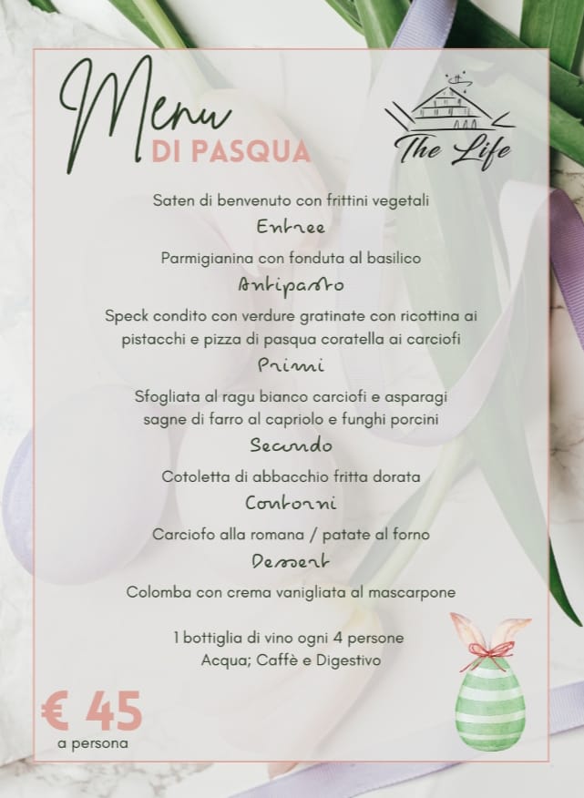 Bevande incluse: 1 bottiglia di vino ogni 4 persone, acqua, caffè e digestivo